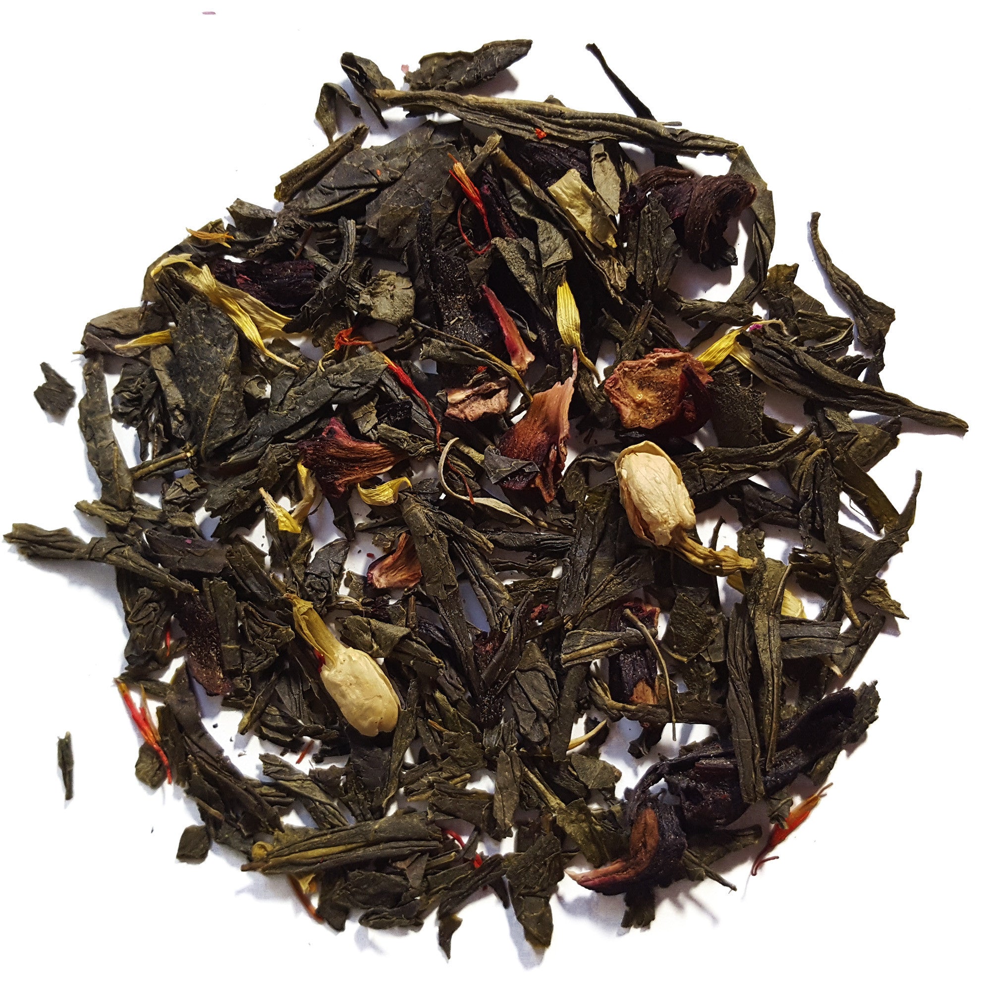 Té verde con jazmín, hibiscus, lichi y esencia de mango.