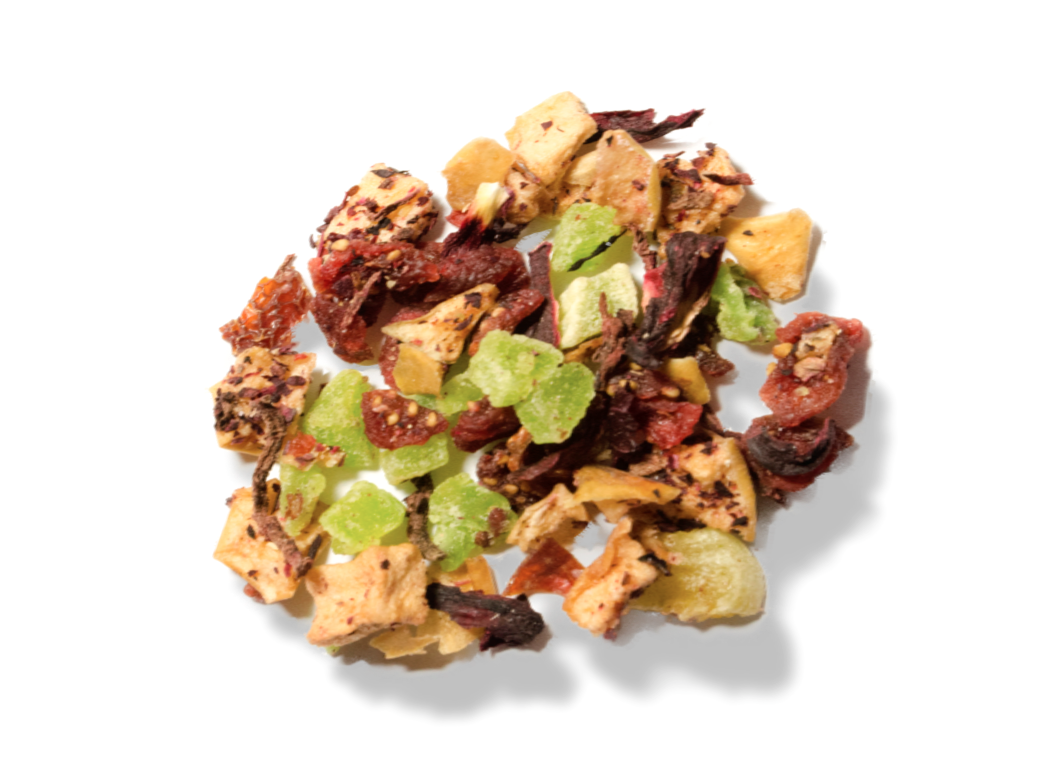 Kiwi, fresas, manzana, flor de jamaica y escaramujo